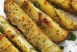 Papas cuña al parmesano, con ajo al horno
