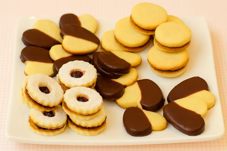 • Para un toque especial, podés usar mermelada de frutos rojos en las masitas con agujerito central.