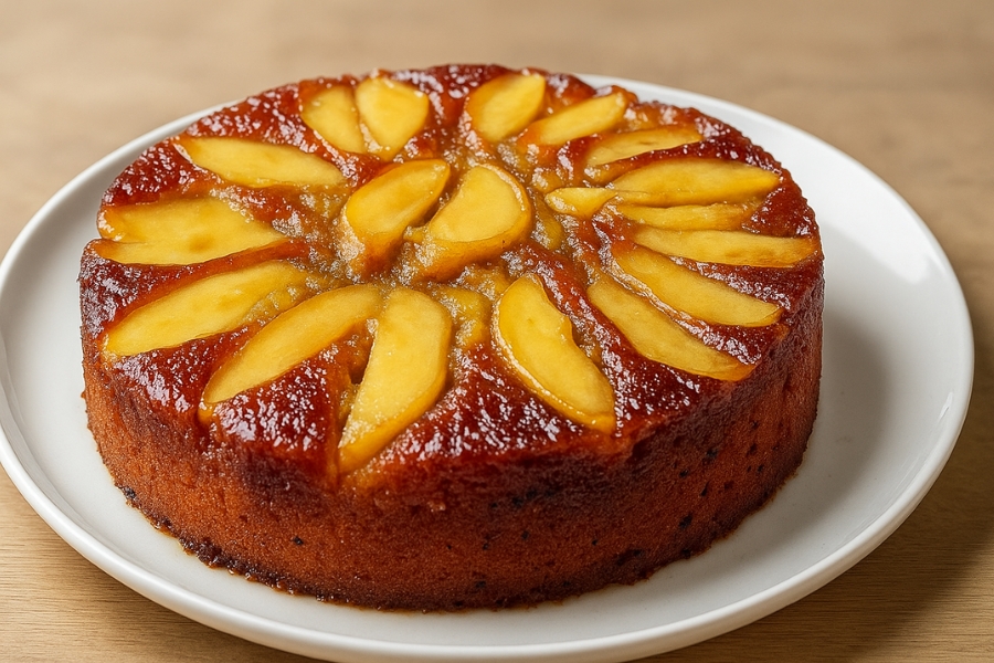 Con esta receta vas a lograr un pastel de manzana igual al de la imagen: dorado, brillante, húmedo y naturalmente dulce, sin harina y sin azúcar refinada.