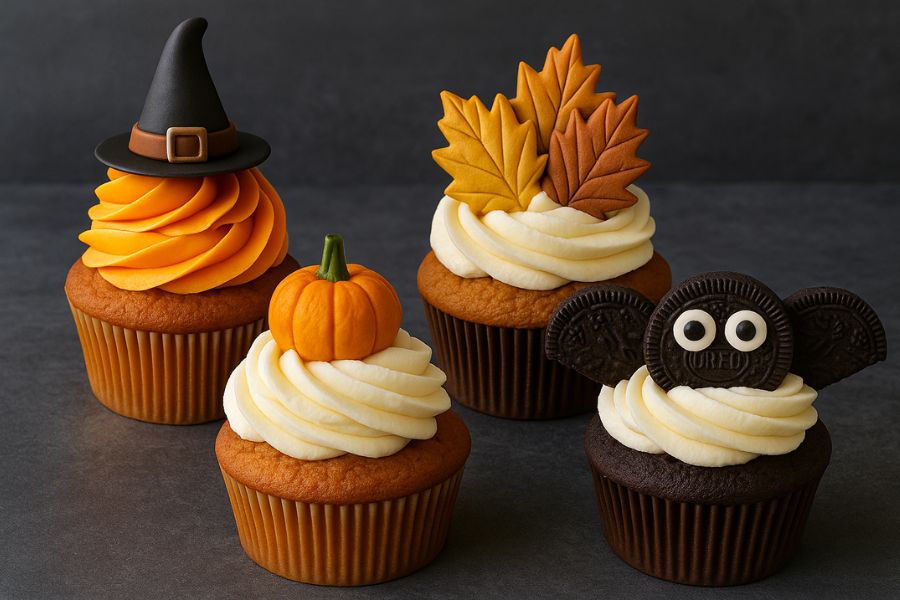 Estos cupcakes son perfectos para la época de otoño o Halloween, con decoraciones creativas y sabores irresistibles.