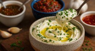 Se prepara en pocos minutos, no lleva cocción y tiene una textura bien casera, ideal para acompañar carnes, empanadas, tacos, sandwiches o simplemente unas papas doradas.