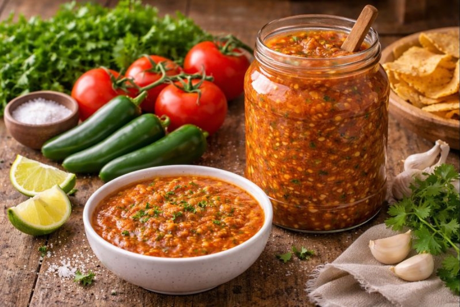 Una buena salsa roja levanta cualquier comida. Esta versión es fresca, intensa y con ese picante justo que no tapa los sabores, sino que los realza.