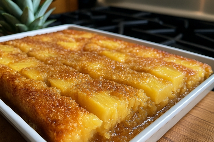 Dorada, brillante y con ese contraste perfecto entre lo dulce del caramelo y la acidez del ananá, esta torta invertida es un clásico que siempre se roba todos los elogios.